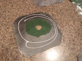 As a quick reminder, I'm building hills for the King of the Hill scenario for the upcoming tournament, and as part of that scenario we need to insure that people know where the top of the hill is (so that they can claim it for Victory Points). So we start off by adding a different type of basing to this section - in this case, some sand for a rocky finish: