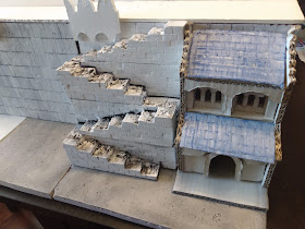 Here's what the first level looks like - it was a lot of work, but I'm super happy with it. Whenever we return to this series (I need to get some terrain made up for Fantasy Fellowships - plus there's buildings arriving from the Kingdom of Durak Deep Kickstarter from Conquest Creations), we're ramping up to the second level, where we need to finish . . . well, a ramp, as well as more walls and a smaller gatehouse. Should be "fun" - until next time, happy hobbying!